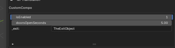 In Blender, the game designer can replace <game-object-name> with the name of an object that owns an MFTrainStationExit component.