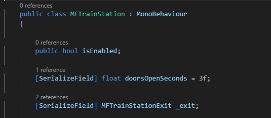 In MFTrainStation, the last default field _exit is a Component reference.